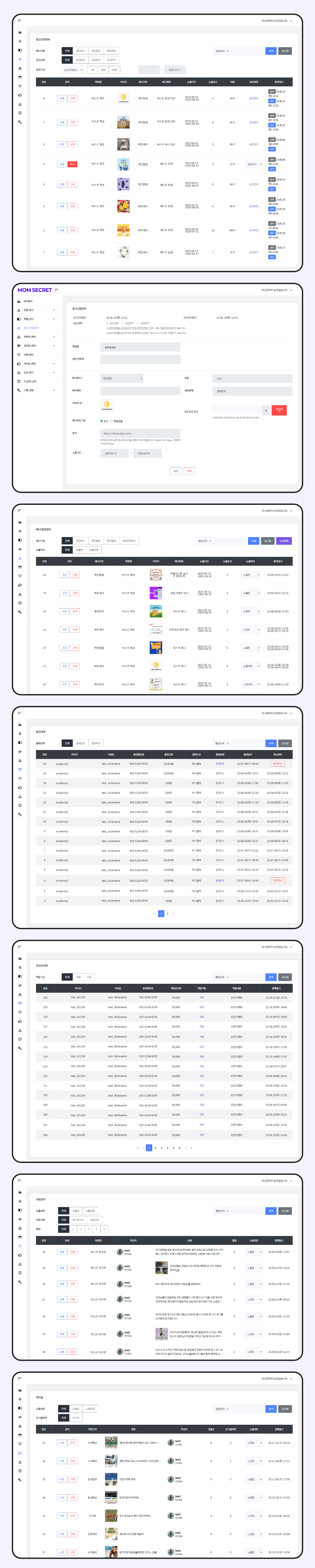 -배너 관리: 등록 완료된 광고를 확인, 노출 여부 변경 가능